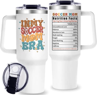 Soccer Mom Tumbler with Handle, Soccer Mom Gifts - 40 oz Football Moms Drinking Cup with Lid and Straw - Insulated Football Moms Cup Gifts for Mothers Gift for Birthday Mother Day Christmas