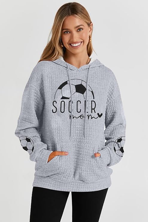 Game Day Hooded Sweatshirt Women Funny Football Graphic Shirt Waffle Knit Game Day Pullover Hoodies Long Sleev